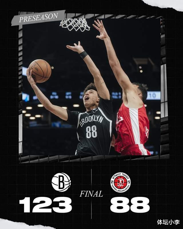 Vào ngày 5 tháng 10, NBA Presleg tiếp tục, với Nets chơi với Jerusalem tại nhà. Khoảng cách về sức mạnh giữa hai đội trong trò chơi này vẫn rất rõ ràng. Các lưới ở dạng tuyệt vời và chủ động sớm trên sân, và sau đó họ cũng mở rộng khoảng cách. Sau một nửa, họ đã ghi được 25 điểm, và Nets đã rút lại lực lượng chính trong hiệp hai, và Gap tiếp tục mở rộng, dẫn đến tới 40 điểm, mất hồi hộp sớm trong trò chơi. Cuối cùng, Nets đã đánh bại Jerusalem 123-88.